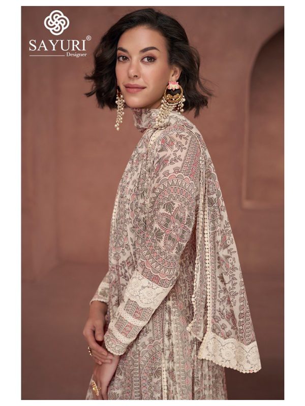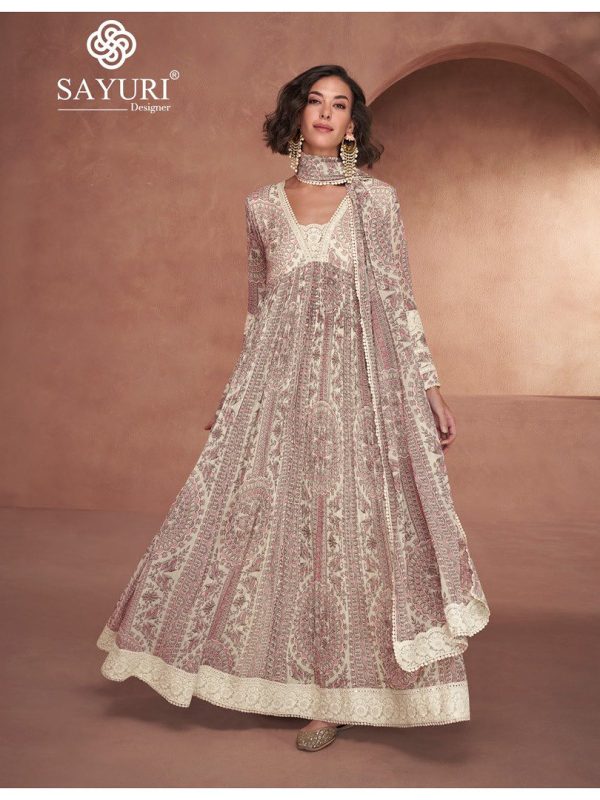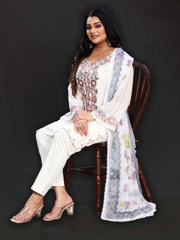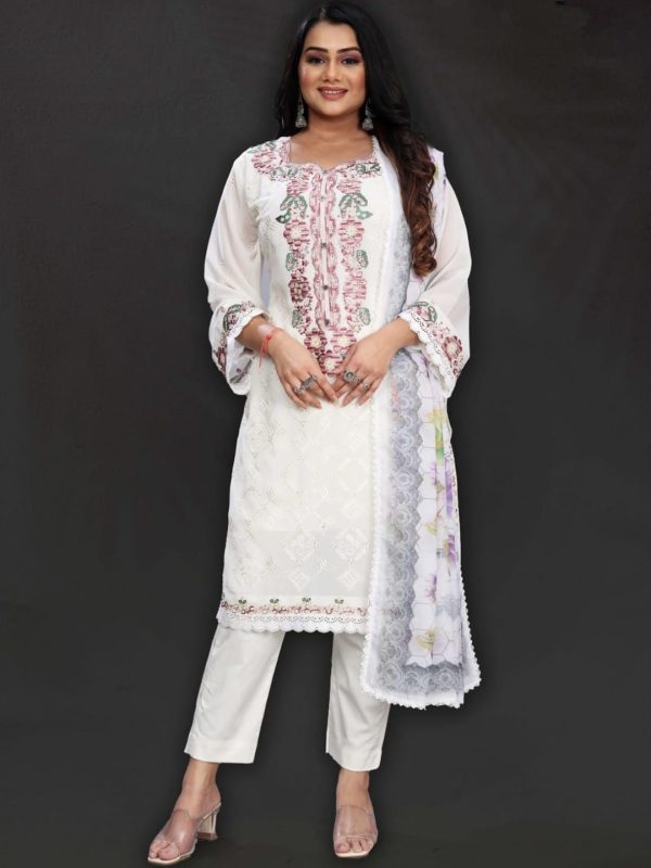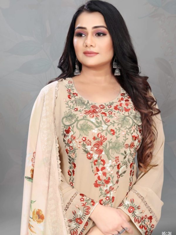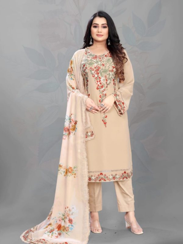 CreamGreyMaroon+1PeachGeorgette Fabric Stitch suit