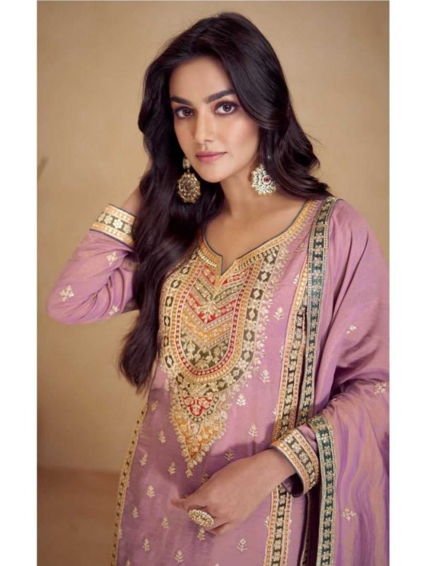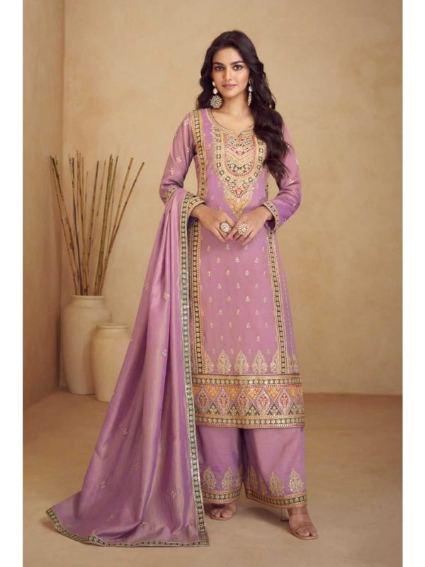 LAVENDERSimar Silk Embroidered Sequins Palazzo Suit